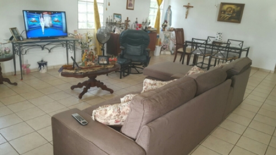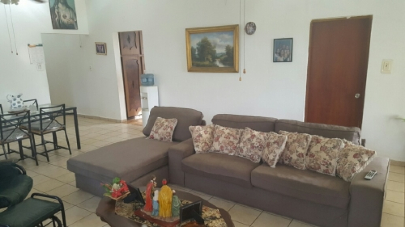 Bella y amplia propiedad en sector exclusivo con control de acceso. Cuenta con cuatro cuartos, un baño interior y otro en terraza. Amplia sala, comedor, cocina, marquesina doble, un almacén exterior 1,484 pies de construcción en 1,500 metros de solar con árboles frutales. Area fresca y tranquila cerca de Iglesias, farmacias, centros comerciales. Llame ya!.